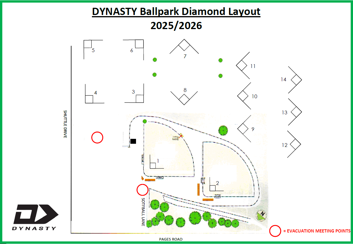 There is to be no training or practice on inside or outside diamonds at Dynasty Ballpark. Please enquire to the office for more information of the Dynasty Ballpark booking system. There is a $100 penalty rate for those who do not comply.