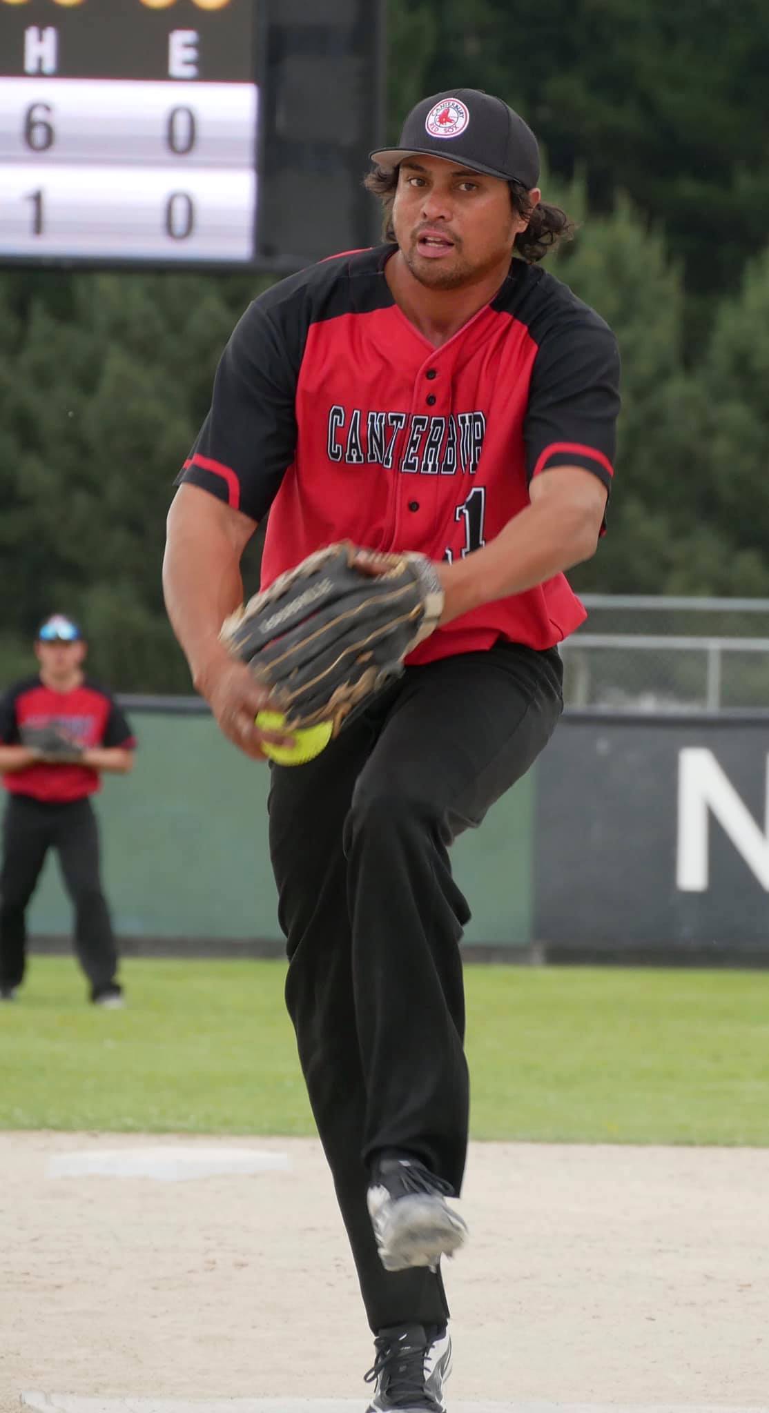 The Canterbury Red Sox hurler threw a 7-0 win, allowing just two safe hits – an infield single to Craig Nelson and a single to Chris Eden, the former Black Sox outfielder pitching for PCU.